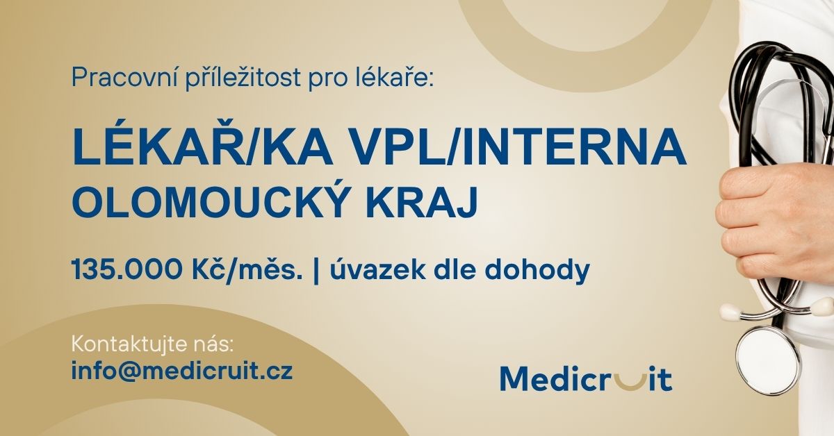 Přihlásit se k zaslání zprávyHledáme atestovaného lékaře/ku na pozici VPL, který/á se připojí k našemu týmu ve zdravotnickém zařízení, které provozuje čtyři ordinace praktického lékaře pro dospělé v okrese Přerov Olomoucký kraj. Klademe důraz na moderní přístup a individuální péči o pacienty.
