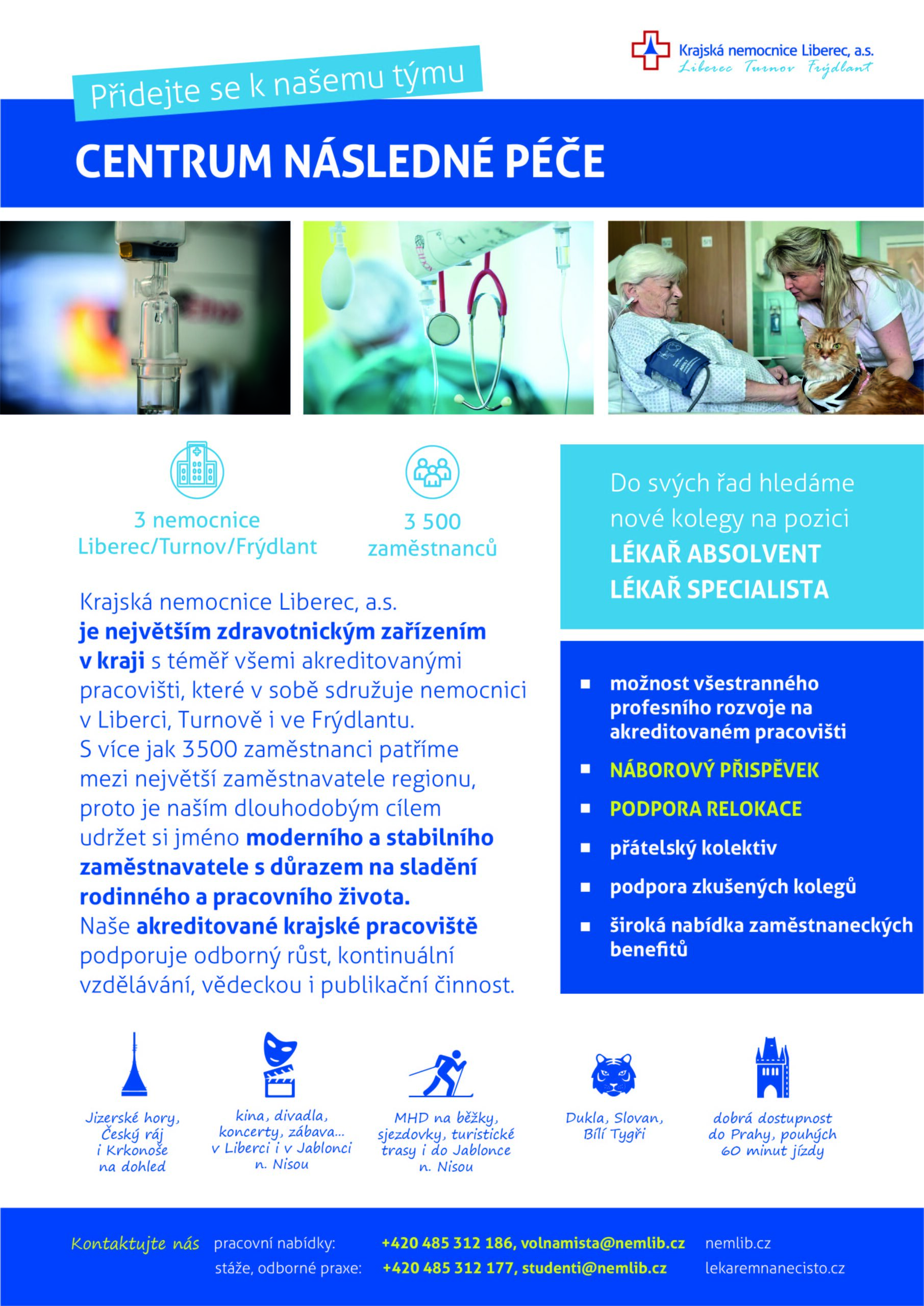 Pro Centrum následné péče Krajské nemocnice Liberec, a.s. přijmeme nové kolegy/kolegyně na pozici LÉKAŘ/KA.