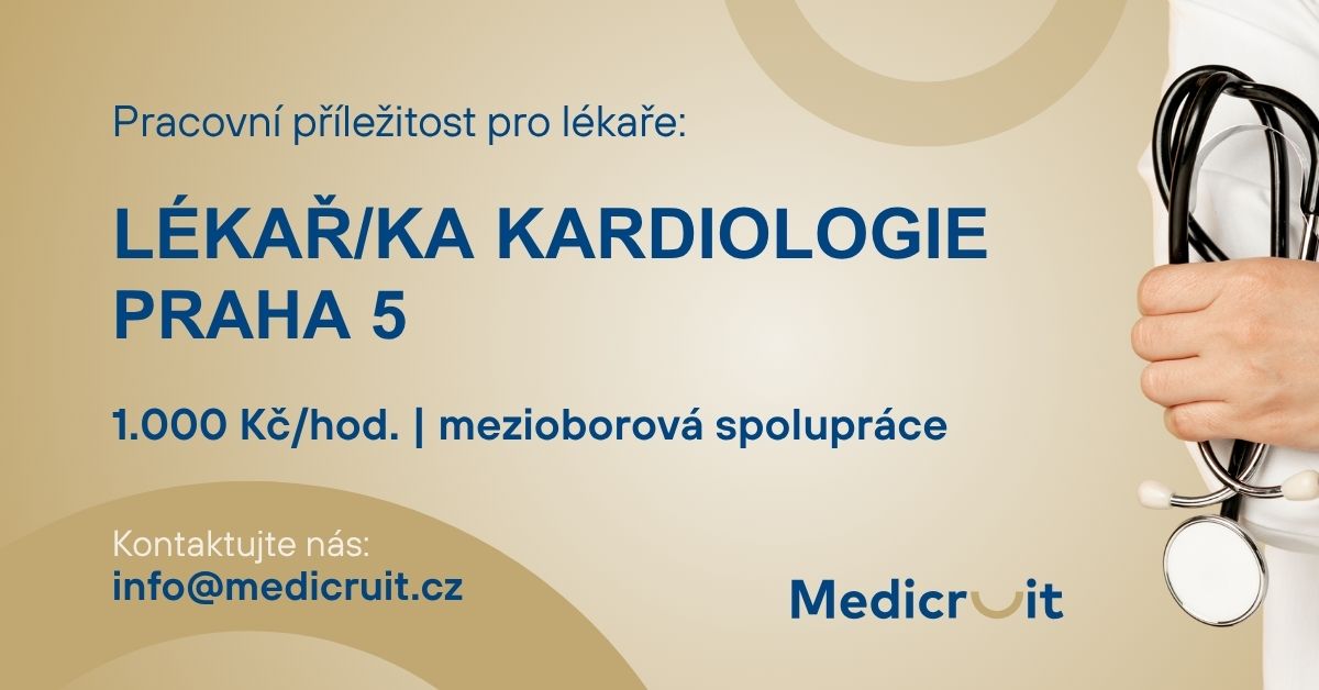 Moderní klinika na Praze 5 hledá atestovaného lékaře/lékařku v oboru KARDIOLOGIE Popis Možnost pracovat v novém ambulantním provozu. Mezioborová spolupráce, rozvoj inovativních...