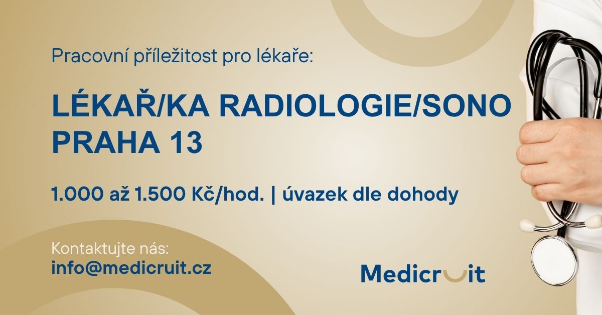 Pro polikliniku na Praze 13 hledáme lékaře/ku L2, L3 v oboru radiologie/sonografie.